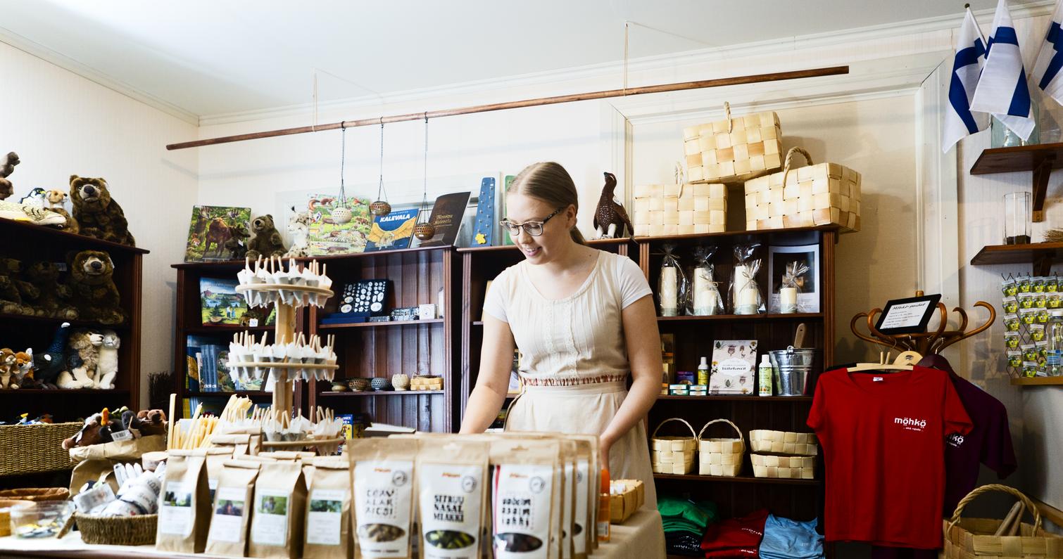 Im Museumsshop Ruukinpuoti gibt es Handwerkskunst, Bücher, Spielzeug, Spiele, Naturkosmetik und vieles mehr! Während der Öffnungszeiten des Museums ist auch der Shop geöffnet und frei zugänglich.