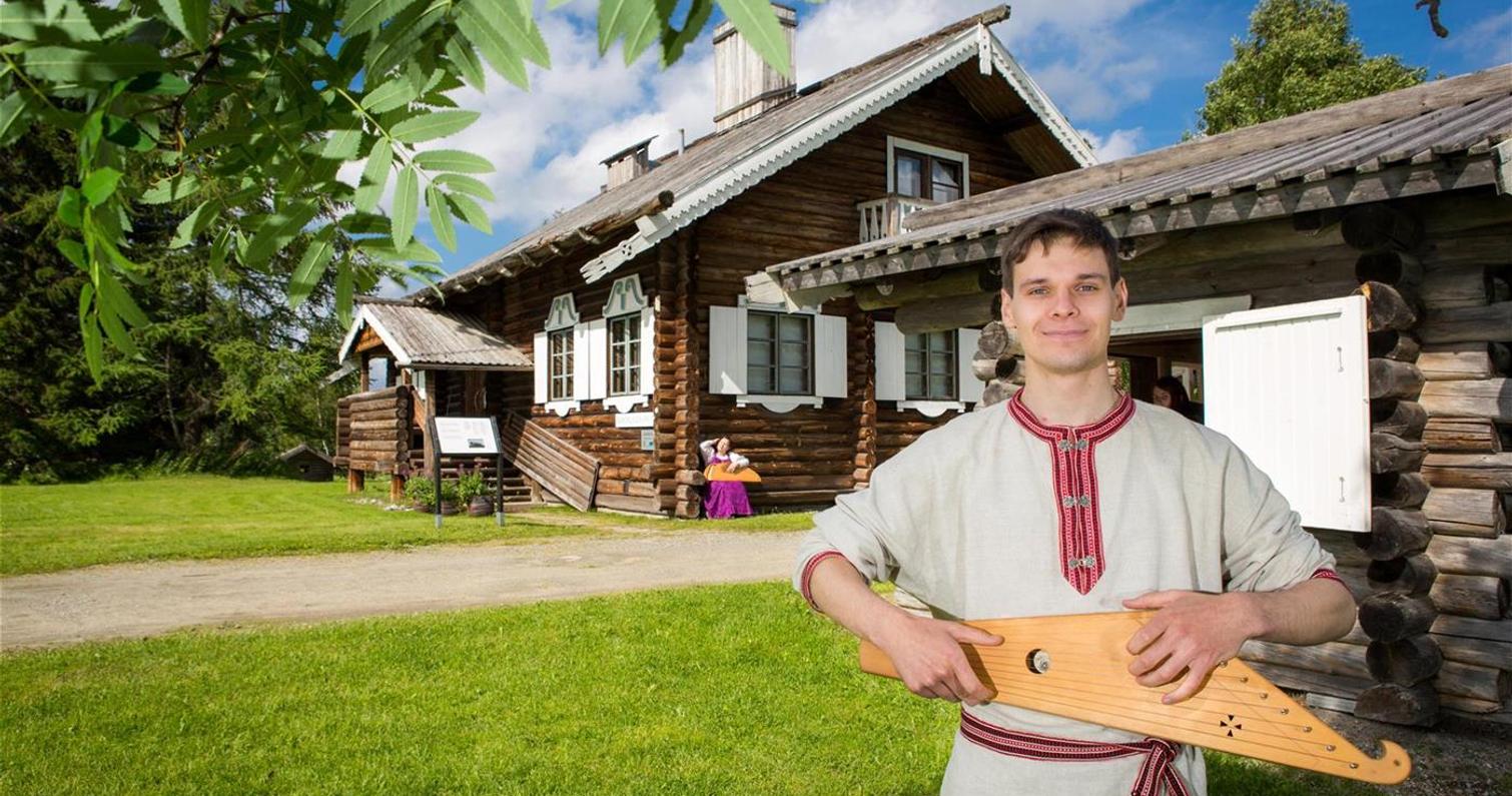 Ilomantsi’s secluded location on the border between the Lutheran and orthodox cultural areas has greatly influenced the area’s Karelianness. The atmosphere and exhibits of the Rune Singer’s House convey the ambience of an old Karelian cottage. The know-how to sing runes and play the kantele as a tradition which passed on from one generation to the next has been preserved in the area for relatively long.